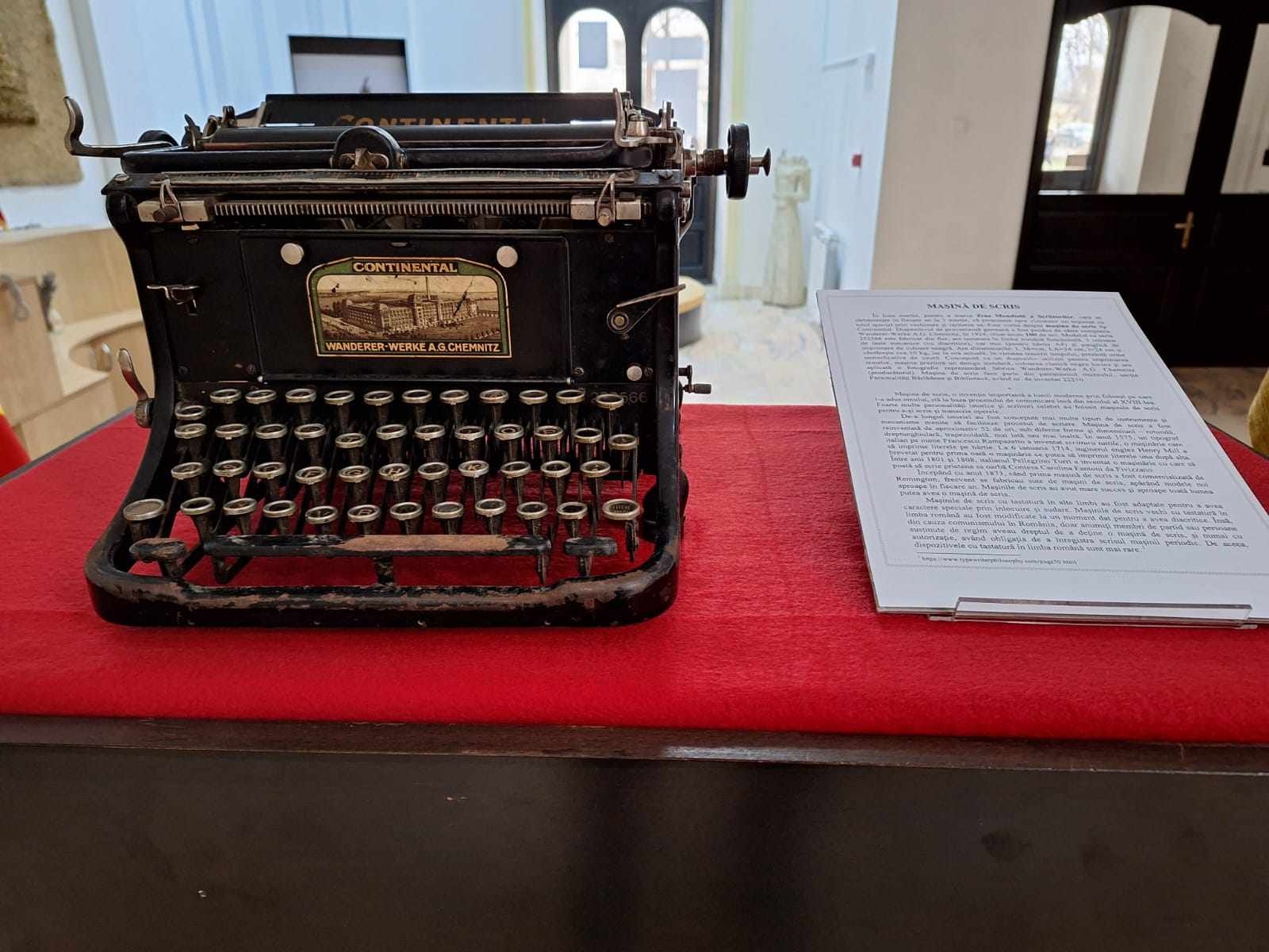 În luna martie, pentru a marca Ziua Mondială a Scriitorilor, care se sărbătorește în fiecare an la 3 martie, vă propunem spre vizionare un exponat cu totul special prin vechimea și raritatea sa. Este vorba despre mașina de scris tip Continental. Dispozitivul de proveniență germană a fost produs de către compania Wanderer-Werke A.G. Chemnitz, în 1924, chiar acum 100 de ani. Modelul cu seria 252566 este fabricat din fier, are tastatura în limba română funcțională, 5 coloane de taste mecanice (cu diacritice), car mic (pentru hârtie A4) și panglică de imprimare de culoare neagră. Are dimensiunile: L 38=cm, LA=34 cm, l=24 cm și cântărește cca 10 kg, iar la ora actuală, în virtutea trecerii timpului, prezintă urme semnificative de uzură. Concepută ca un dispozitiv utilizat pentru imprimarea textelor, mașina prezintă un design standard, culoarea clasică negru lucios și are aplicată o fotografie reprezentând fabrica Wanderer-Werke A.G. Chemnitz (producătorul). Mașina de scris face parte din patrimoniul muzeului, secția Personalități Bârlădene și Bibliotecă, având nr. de inventar 22210.