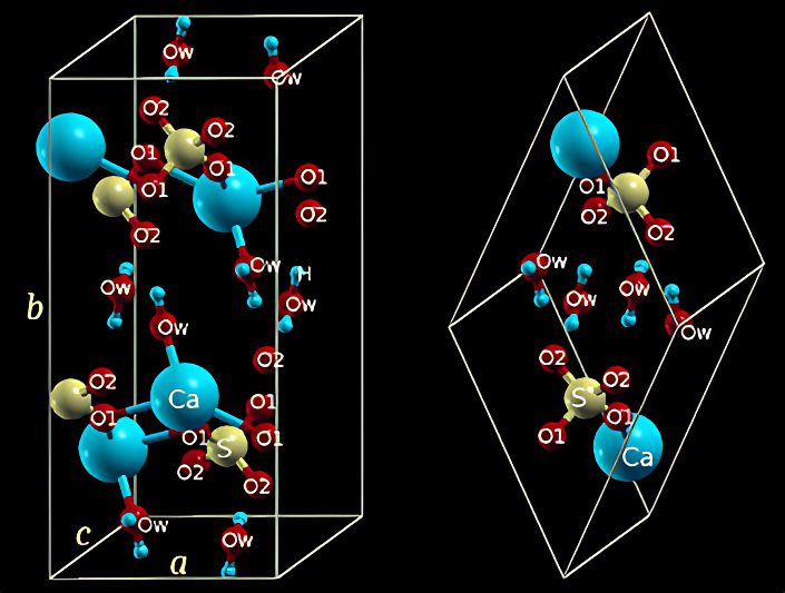 - Compoziție chimică: 23% calciu, 18% sulf, 59% apă și oxigen;