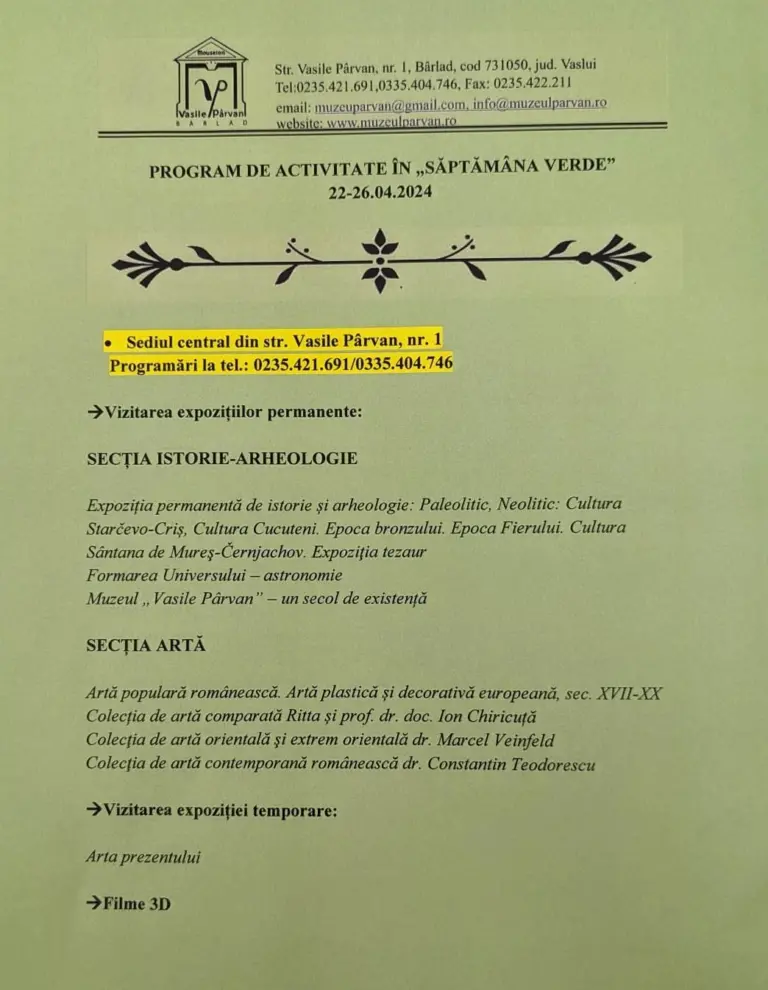 Vizitează Muzeul "Vasile Pârvan" Bârlad