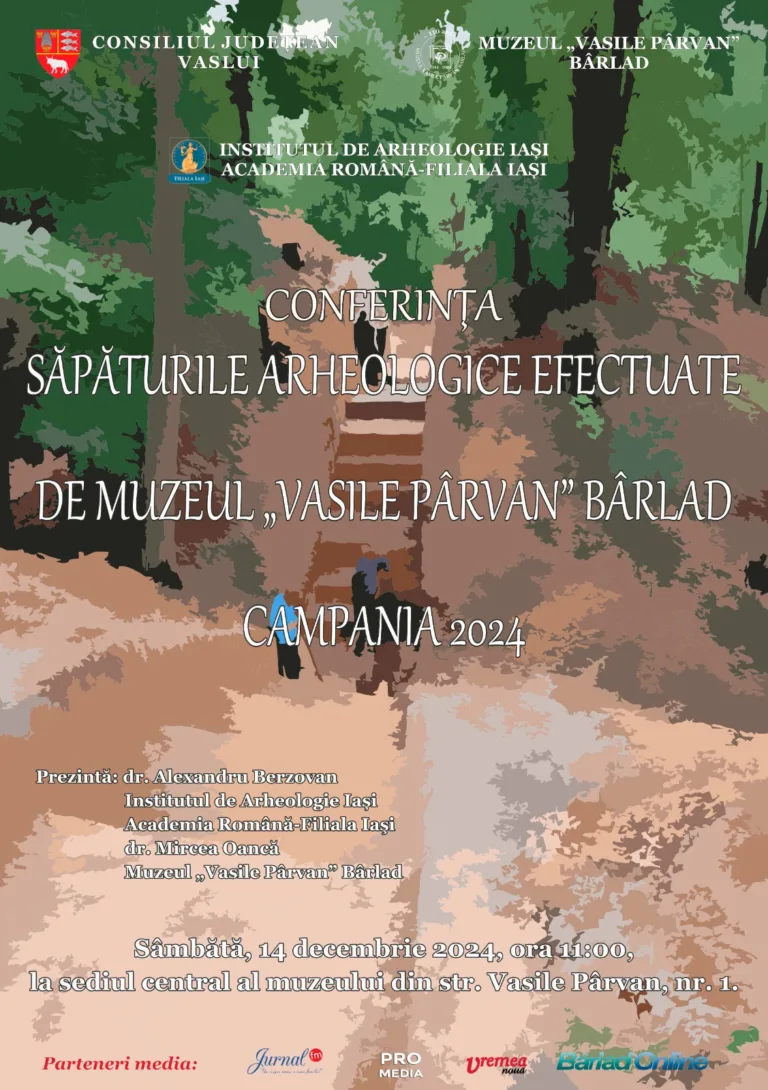 CONFERINȚA ,,SĂPĂTURILE ARHEOLOGICE EFECTUATE DE MUZEUL „VASILE PÂRVAN” BÂRLAD. CAMPANIA 2024”